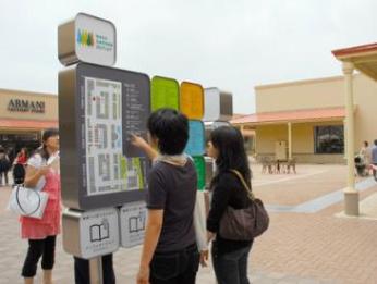 一般商业中心购物区域的范围面积非常广大,像这些商业区域标识指示牌设计部分是很重要的,引导、说明、指导对大众来说是快速认识环境与方便寻找自己购买物质的方向、位置的方式,因此商业标识牌的设计要非常明确、清晰、醒目。