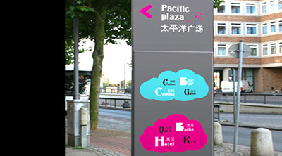 广场在户外环境中需要设计有特色的标识识别系统,以标识的形式传送是一种速度推广和发展,也是大众、消费者视觉传送最有效的形式之一,现代标识已经成为人们共同直观的一种引导识别方向牌。