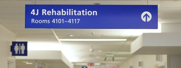 医院房间标识指示牌设计欣赏,主要以白字字体和蓝色底部组成的挂式标识指示牌,提供最佳的引导指示功能,简洁、明了、易识别,方便寻找明确的房间方向。