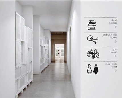 这款墙贴式标识的设计是属于图形功能说明形式的指示标识,像在企业当中的一些区域里设计这种图形功能标识说明,清晰、明了、直观,人们可直接通过视觉明白标识的说明区域的用处。
