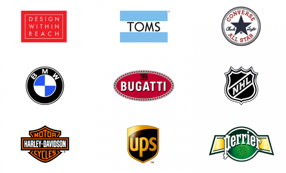 会徽公司标志的示例包括:Design Within Reach、Toms、Converse、BMW、Bugatti、NHL、Harley Davidson、UPS 和 Perrier。