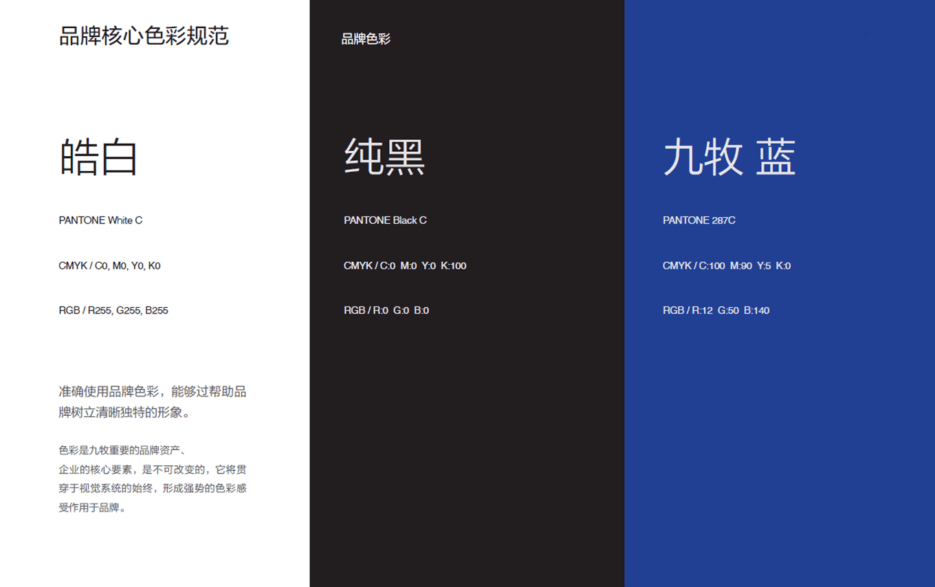 色彩是九牧重要的品牌资产企业的核心要素,是不可改变的,它将贯穿于视觉系统的始终,形成强势的色彩感受作用于品牌。