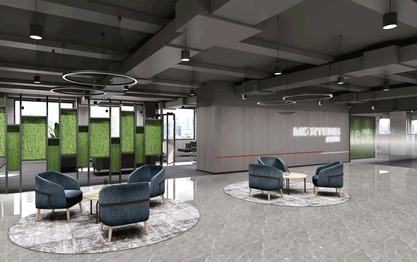 写字楼形象、办公空间的展示,也是客户接触的一个重要怀节,宽大的空间感,品牌标志的精细感。